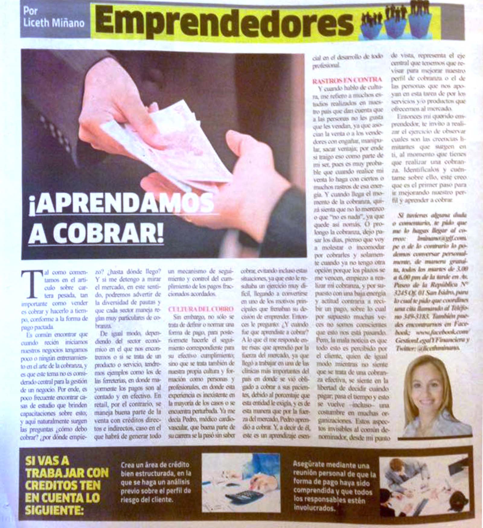 "Aprendamos a cobrar". Diario La Exitosa, 17 de Julio 2016.