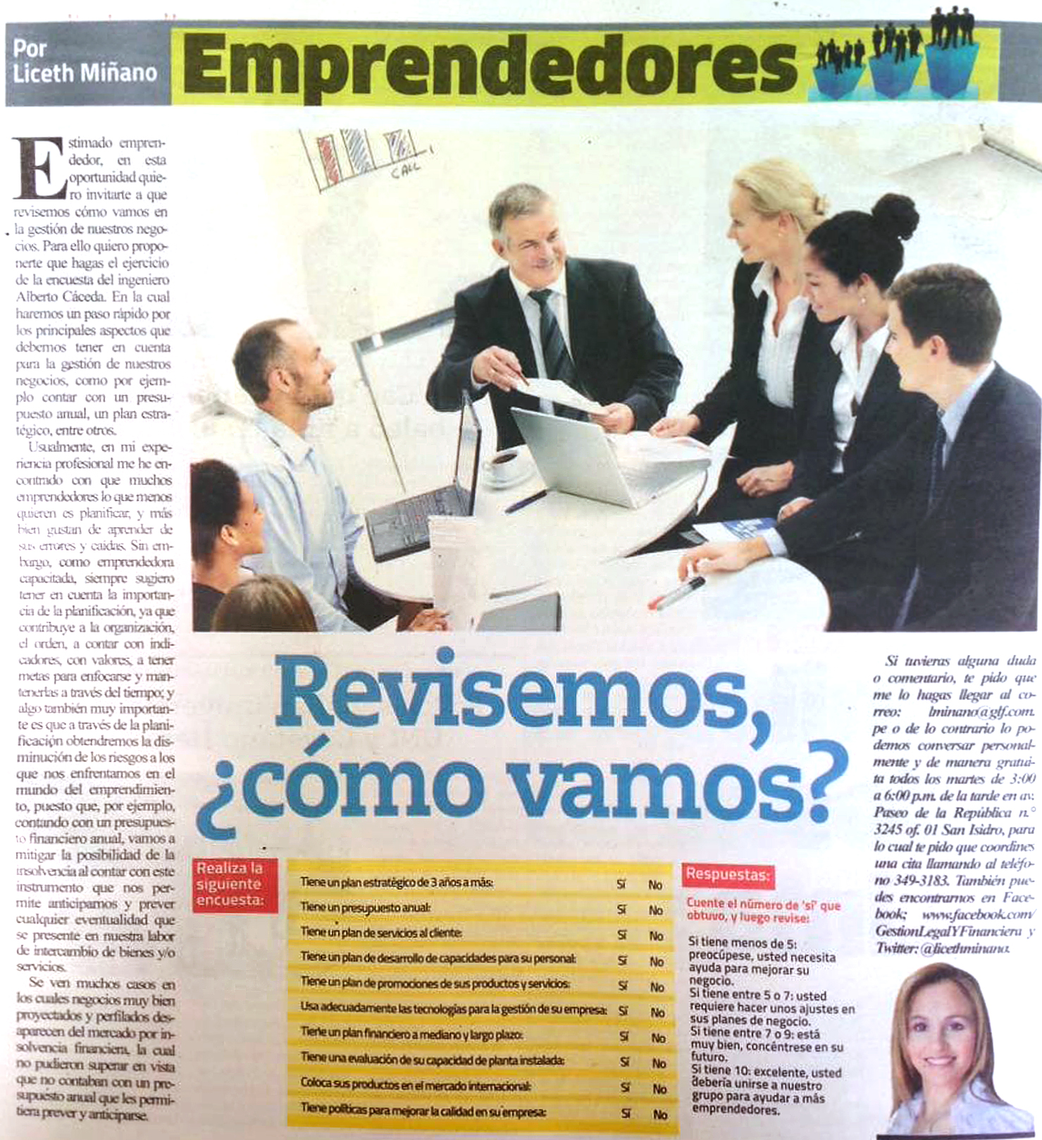 "EL ABOGADO COMO ALIADO DE TU NEGOCIO". Diario La Exitosa, 9 de Abril 2017.