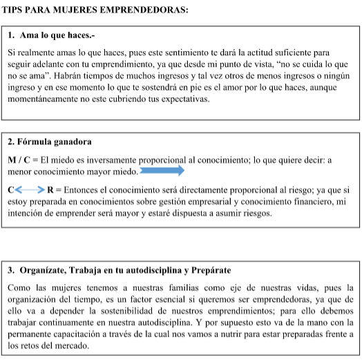 Según investigaciones realizadas recientemente se dice que la mujer peruana es + emprendedora que el hombre peruano, sin embargo, en casi todos los países de la región las empresas de las mujeres son + pequeñas en ventas, tamaño y valor de los activos.